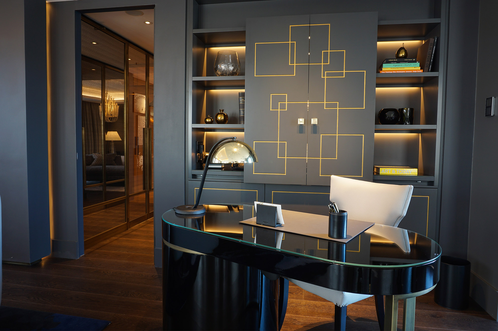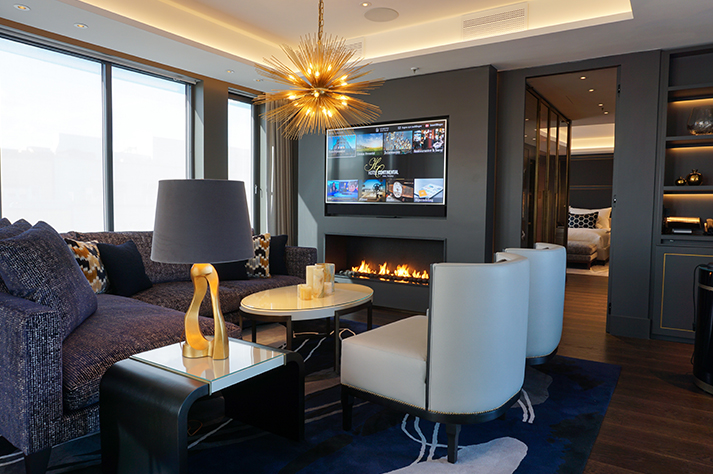 Thoughtfully divided into two floors, the suite features a private sleeping and lounge space on the upper level and an elegant entertaining area below. Whether hosting guests or enjoying quiet solitude, the suite’s layout provides the perfect balance of privacy and openness.