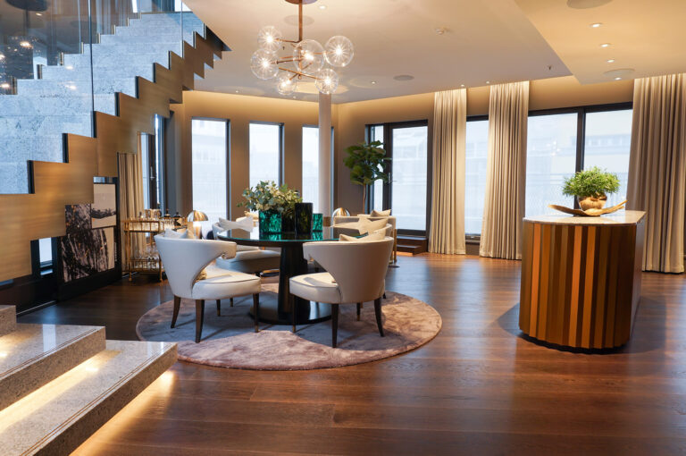 From the moment you step inside, every need is met – leaving you free to enjoy the beauty of this arty and unique two-floor corner suite. With a connecting Junior Suite it measures 240 sqm. For bookings contact us.